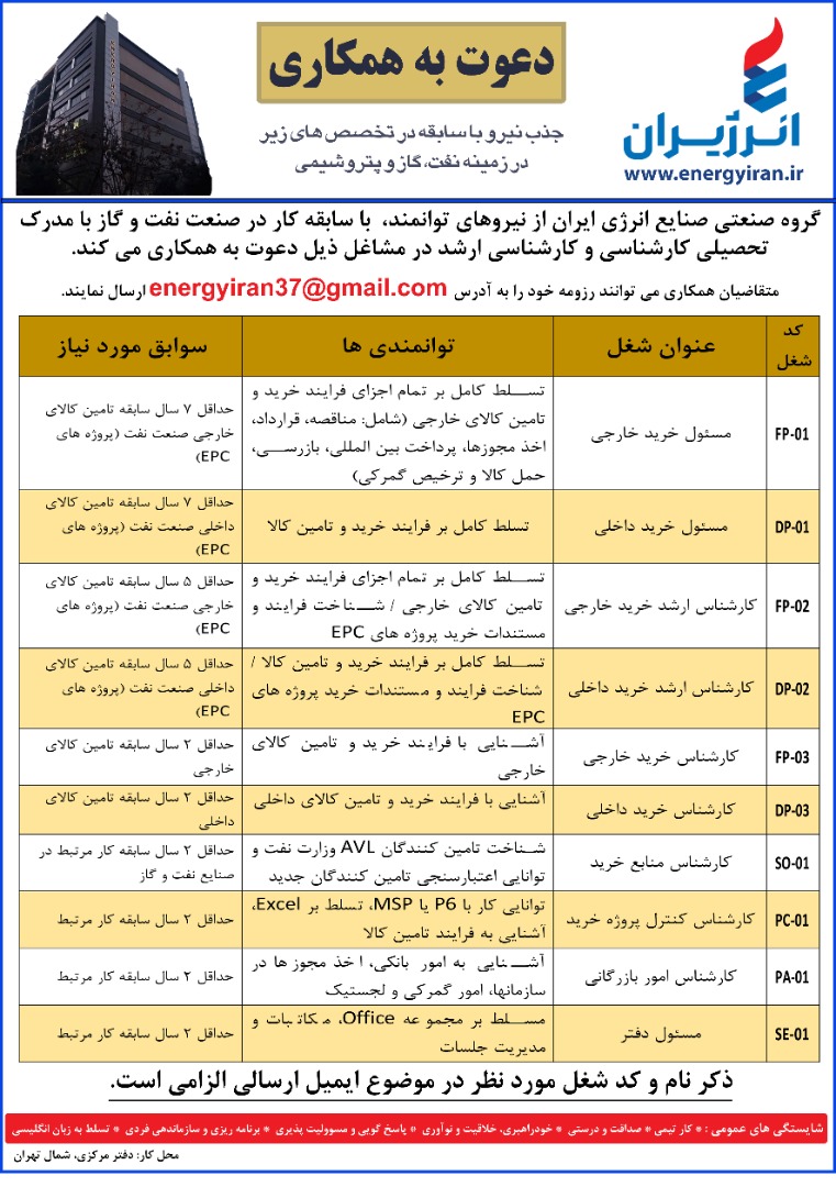 آگهی شماره چهار جذب نیرو شرکت انرژیران